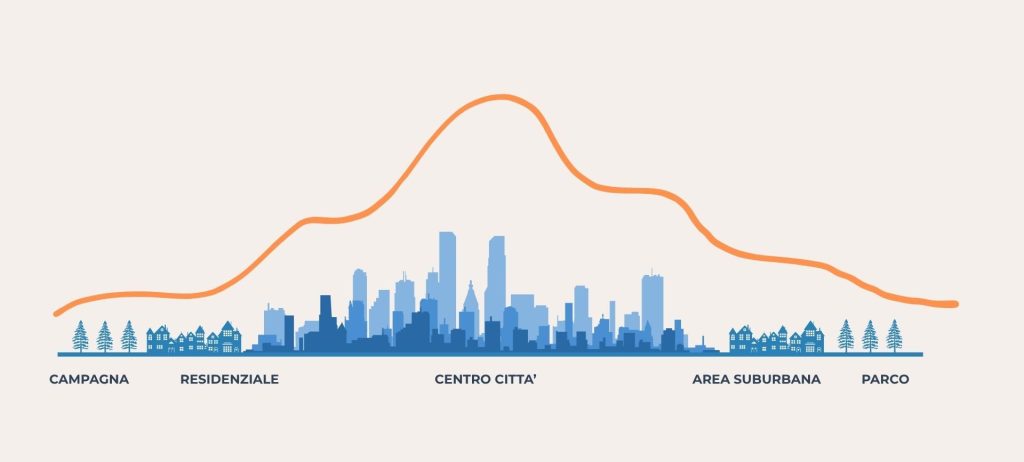 È per questo che si parla di “isole di calore” o Urban Heat Islands.